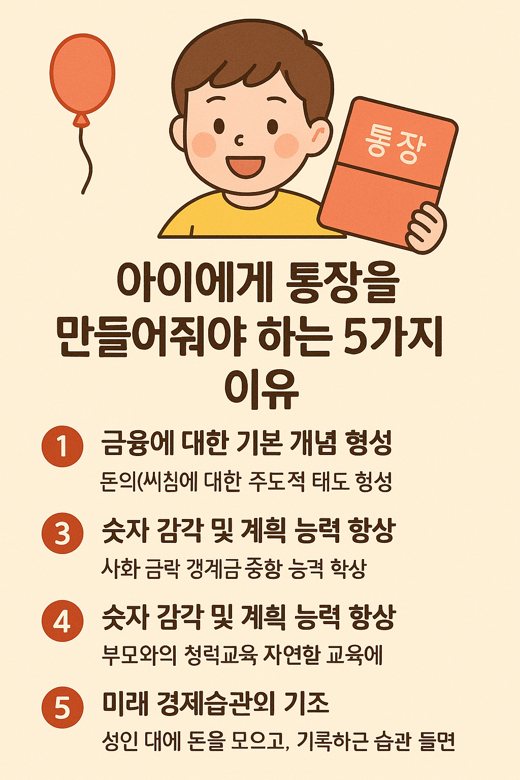 아이에게 통장을 만들어주면, 돈의 흐름과 가치를 자연스럽게 인식하게 됩니다.