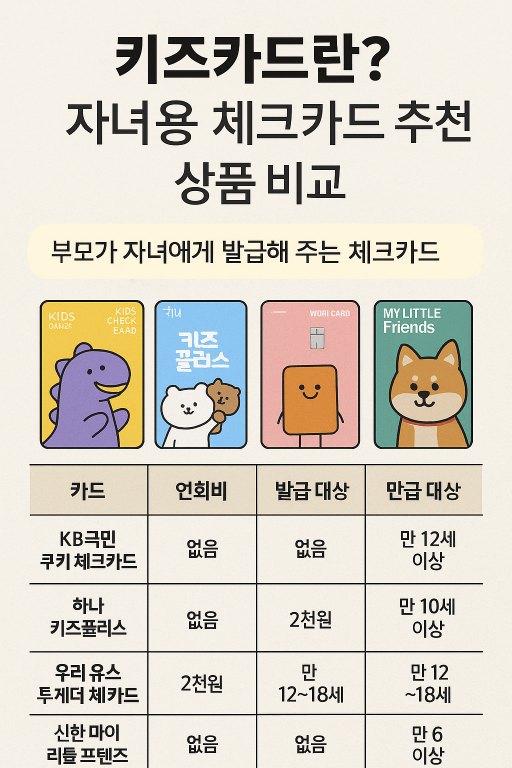키즈카드란? 자녀용 체크카드 추천 상품 BEST 비교 (2025년 기준)
